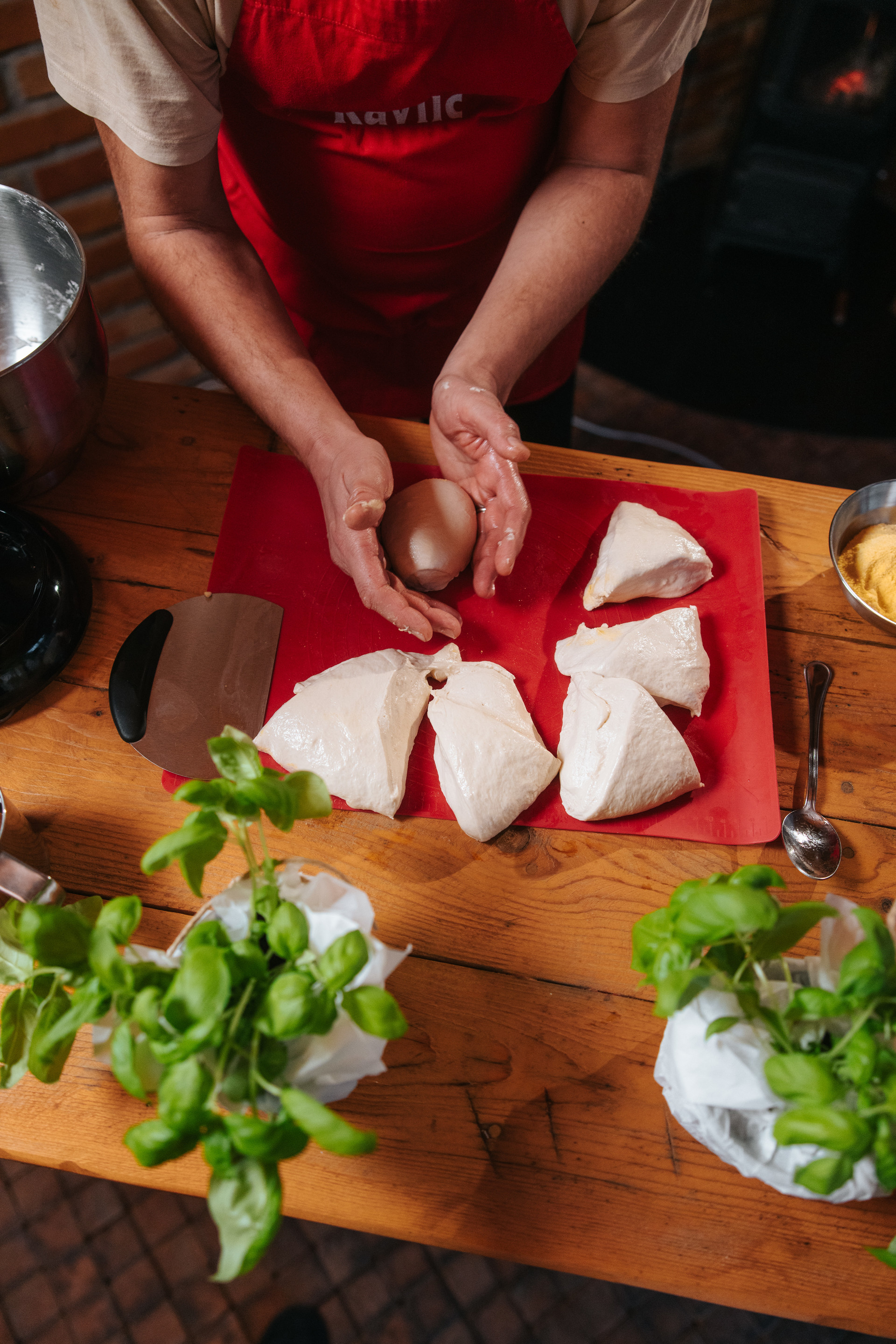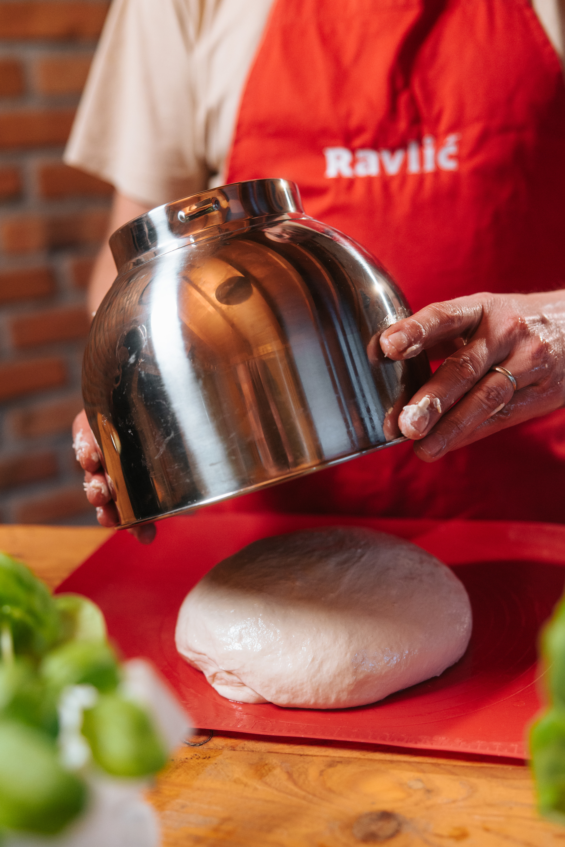 Od navedenih sastojaka zamijesite tzv. prefermentaciju ili "starter" od kojeg ćete napraviti tijesto za pizzu. Za ovo će trebati strpljenje, jer trebate izdvojiti 24h za fermentaciju tijesta koje će te u konačnici dovršiti s dodatkom sastojaka koje ste koristili i za izradu "startera" ili "bige".